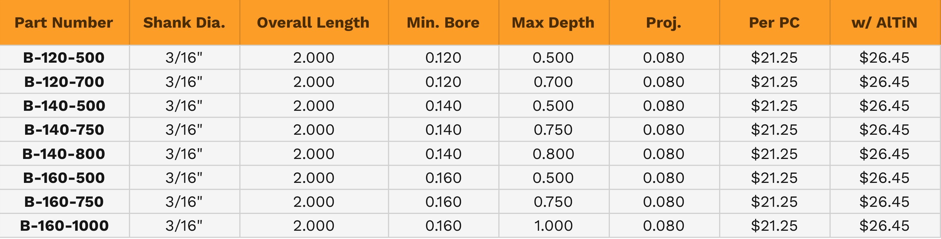 Standard 3/16" Solid Carbide Boring Tool